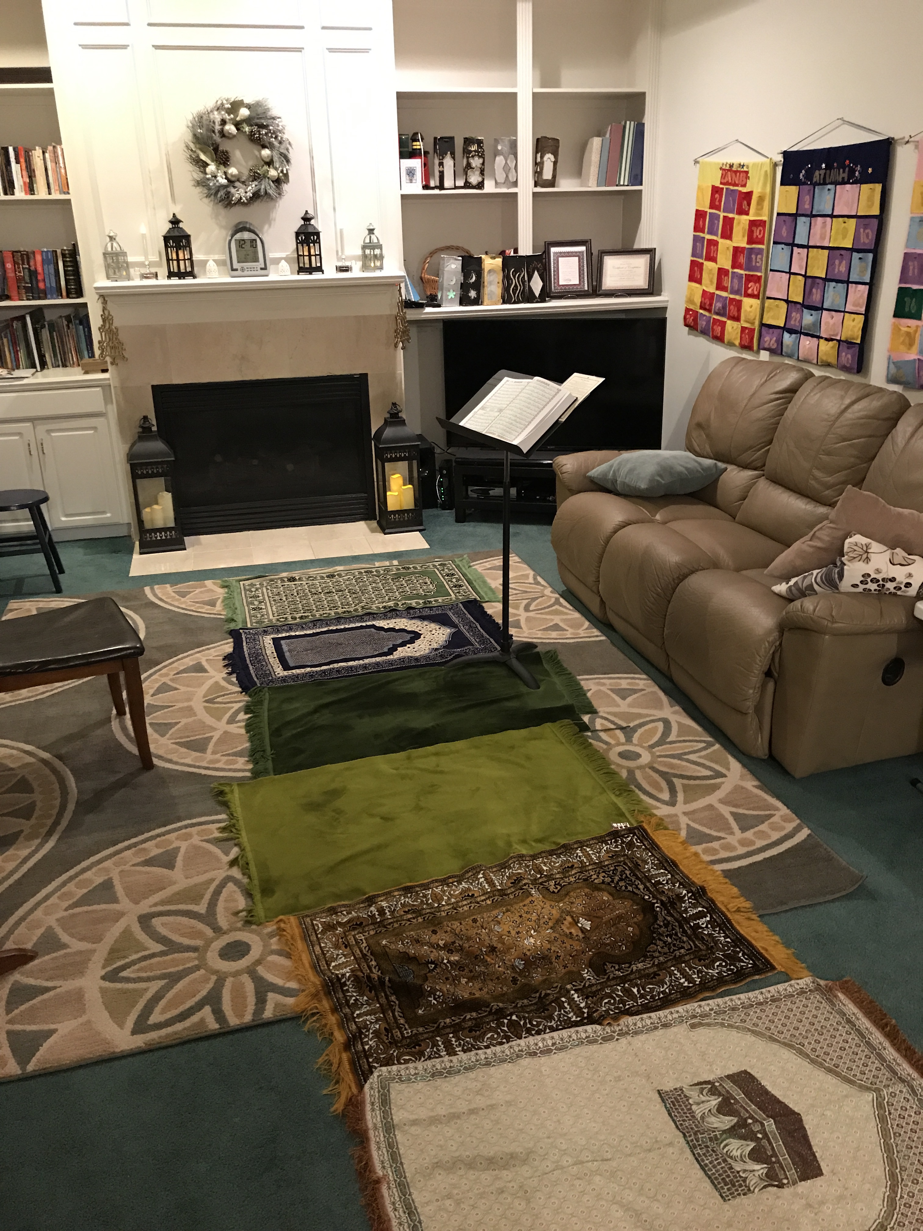 It is a place of colorful prayer rugs each with a history known only to our family, including ones that belong to family members who have passed on and whose rugs give us a reminder to make du`aa for them and also a reminder that we, too, will join their ranks. Every prayer could be our last.